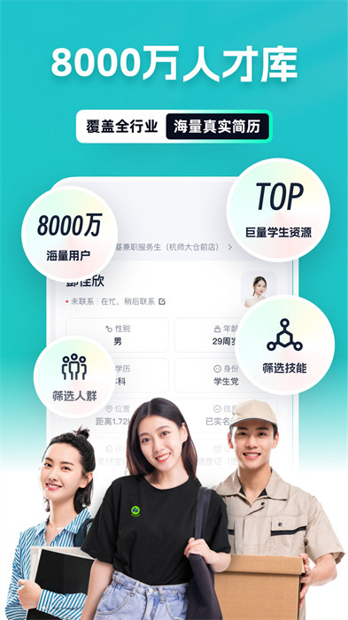 2、智能的匹配职位的具体需求,最快的话三十分钟就可以收到求职者的简历信息;