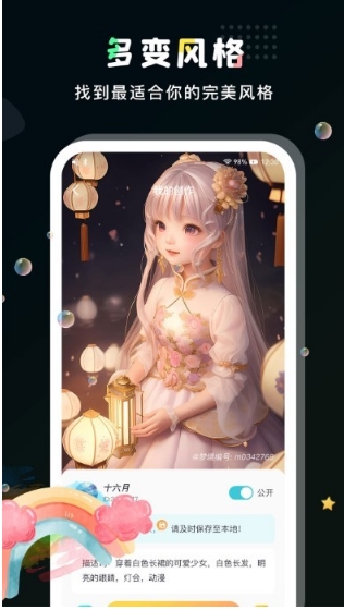 用户通过文字的描述,将梦想中的梦幻场景,制作出精美的图片,带来前所未有的满足感。