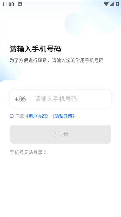 1、进入到软件之后输入用户们自己个人的手机号,然后点击下一步;