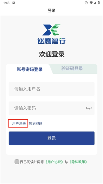 2、接着进入到登录页面,第一次使用需要先进行用户注册,注册成功后才能登录使用;
