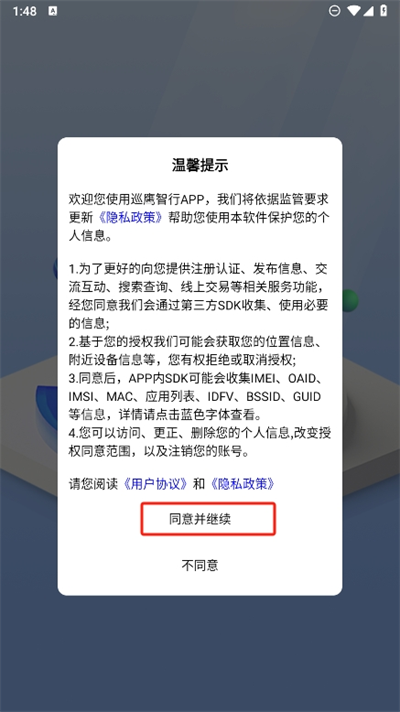 1、进入软件时会弹出弹窗,需要用户们同意隐私政策和用户协议后才能进入软件使用;
