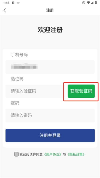 3、输入正确的手机号码并获取验证码,等待一会手机会收到验证码输入进来即可;