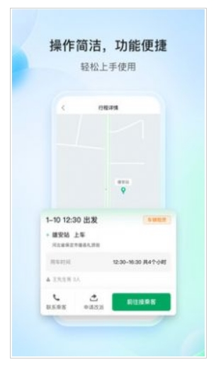 1.提供了预约出行的服务模式,驾驶员能直接收取到相关的预约订单,从而更快速的接到出行订单。