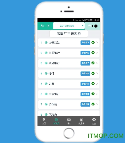 巡检端提示每个巡检点的计划巡检时间及注意事项,同时提供消息发布及查阅功能。
