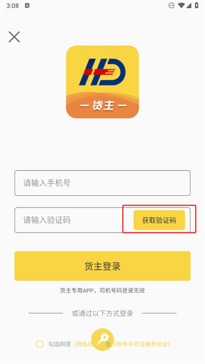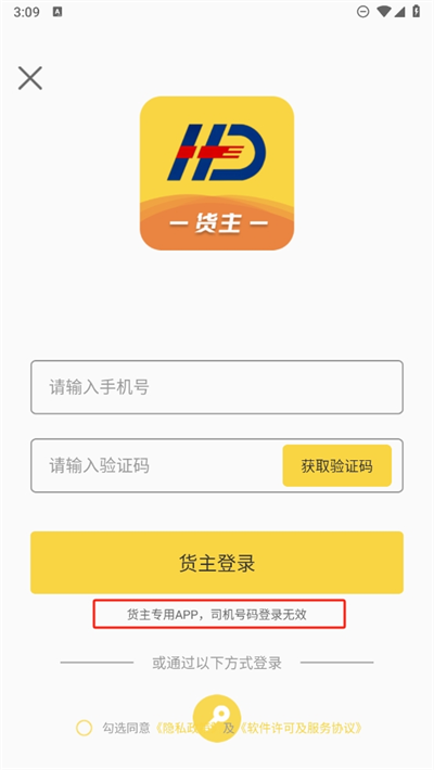 4、值得注意的是该软件是货主专用的软件,如果你有司机账号也没有用需要单独注册一个货主账号登录。