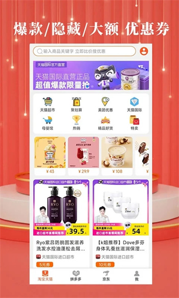 2.直接输入商品名称,就能够快速搜索商品优惠券,包括一些隐藏优惠券也能够轻松获取。