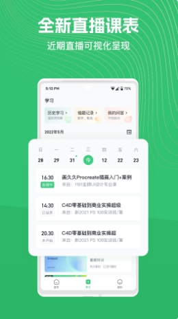 有视频的学习音频的学习,还有着图文的学习,多种的学习方式都可尝试,能在直播课上与老师进行互动,还能在回放中查看更多的课程详情,能反复的进行课程的学习,不会限制看视频的次数,无论是绘图或者是CAD,甚至是电商都可进行学习。
