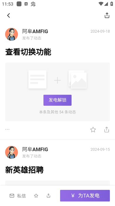3、基本上是按照会员制月度付费,也不是很多,开启为爱发电之后就可以看到作者专属的内容,也是创作者回馈给粉丝的;