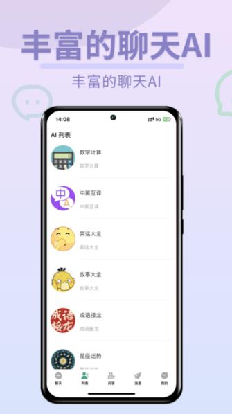 2. 列表中将看到与自己聊天不同的AI,提升互动性,让聊天变得有趣。