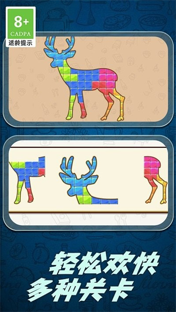 4.能够利用多种方法来组合方块,创造出数不清的图案效果,而且不断的闯关能锻炼自身的空间想象力。