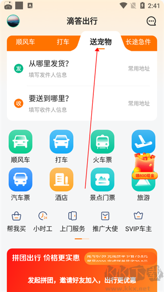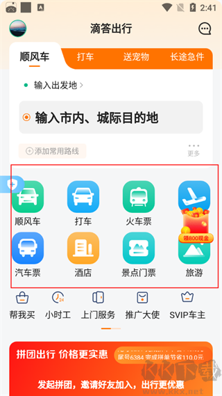 3、除了提供顺风车服务之外还有打车、送宠物、急件等三个功能;