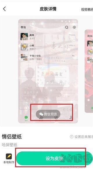 选择一张壁纸点击进去,选择设为皮肤,也可以微信预览