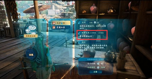 进餐可以在30分钟之内获得增益buff,不同菜品有不同的效果,具体在右侧的说明里进行查看。
